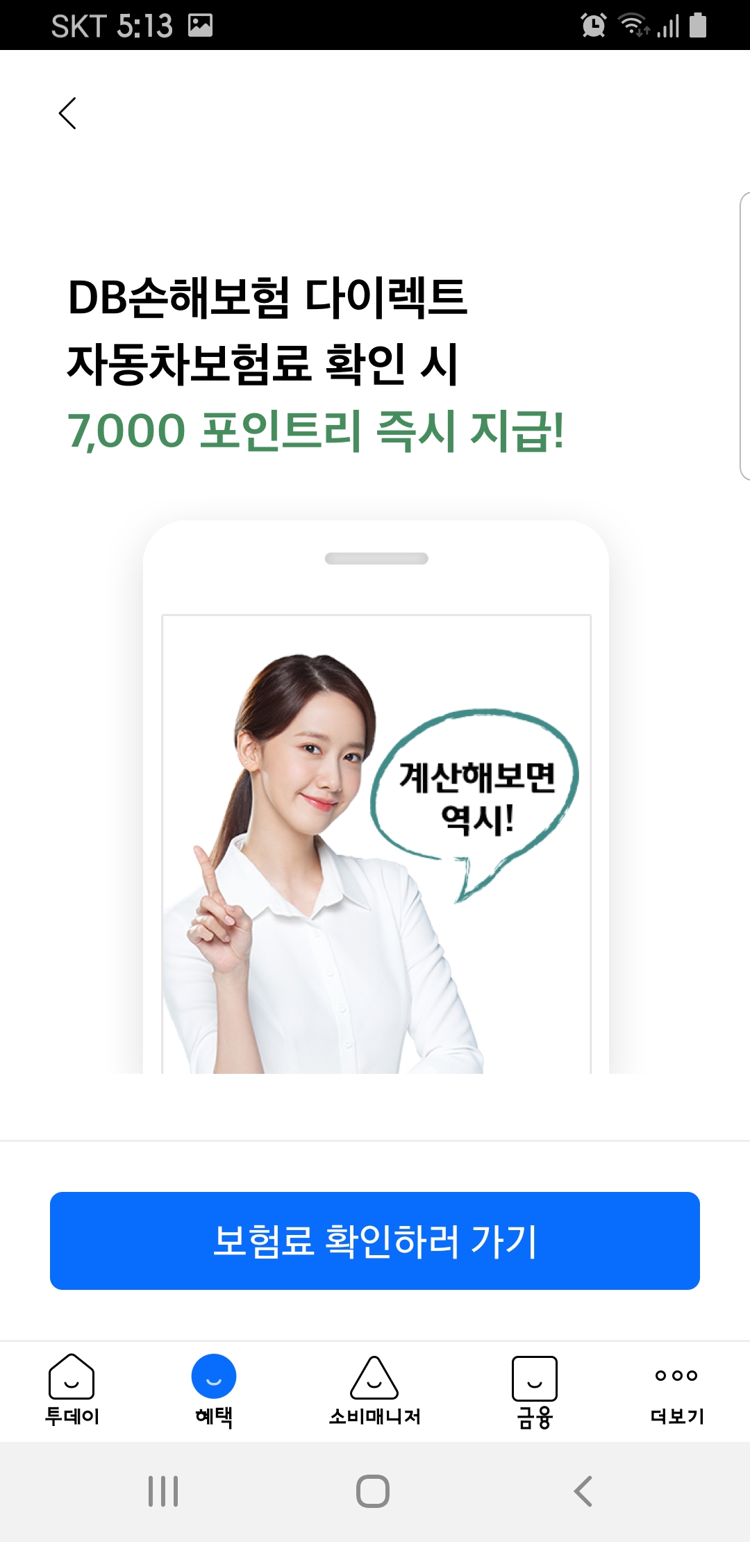 DB손해보험은 7,000 포인트를 현대해상은 7,000 포인트를 준다고 합니다.