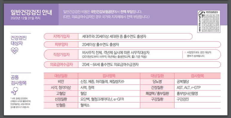 참고로 일반건강검진 비용의 경우, 모두 무료라는 점!