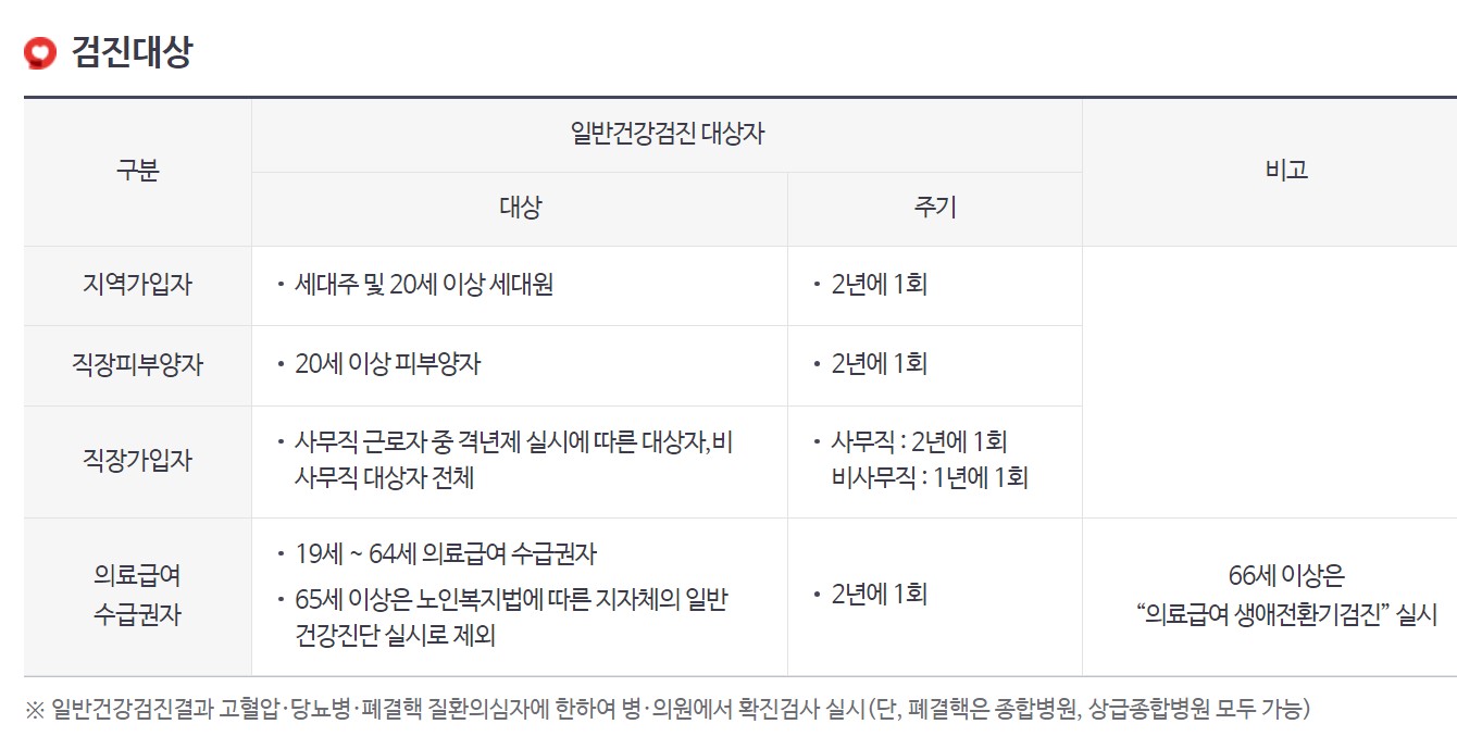-직장가입자는 사무진 근로자 중 격년제 실시에 따른 대상자, 비사무직 대상자 전체가 대상입니다. 사무직의 경우 2년에 한번, 비사무직의 경우 1년 한번 일반건강검진 대상자가 됩니다.