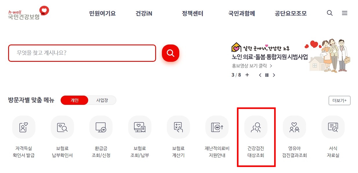 내가 국가건강검진 대상자인지 궁금하다면, 아래 링크를 통해 건강보험공단 홈페이지에 들어가셔서 확인해보시기 바랍니다.