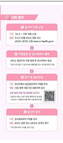 난임 및 질환 소견으로 건강보험 적용되는 급여 검사 시, 검사의뢰서 발급한 이후, 실시한 검사라면 지원 가능.