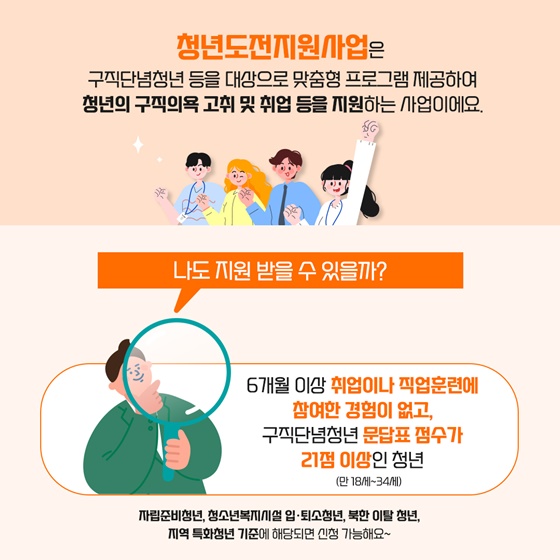 -6개월 이상 취업 및 교육·직업훈련 참여 이력이 없는 청년. (고등학교 졸업(예정)자는 예외)