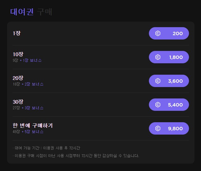 웹툰은 1회당 200원이었다면, 웹소설은 1회당 100원이네요!! 5화 무료에 대여권 2장 받는다면, 그럼에도 9700원 정도의 결제가 필요합니다, 그러나 카카오페이지에도 다양한 이벤트가 진행중입니다!!