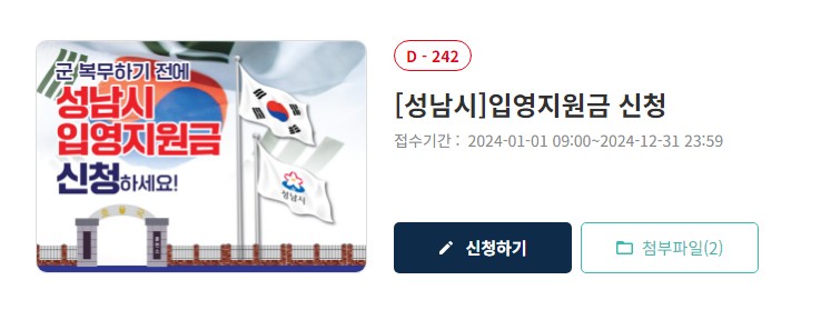 성남시 입영지원금 신청방법