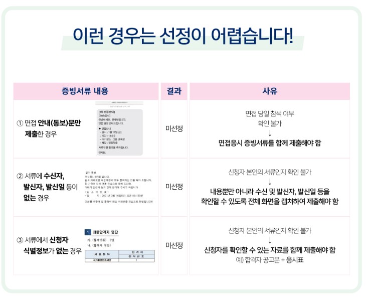 여러분 주의사항이 있습니다!! 증빙서류로 인정되지 않는 경우도 있습니다!! (아래 그림을 참고해주세요)