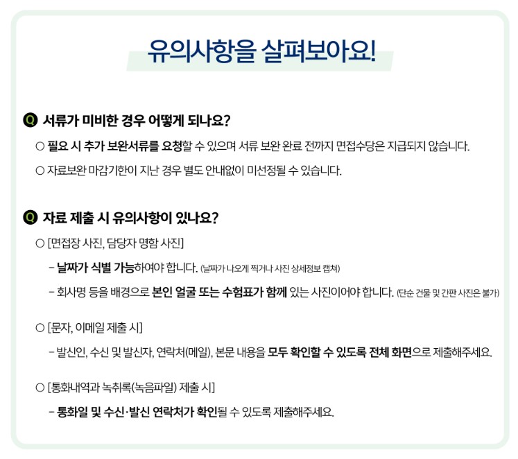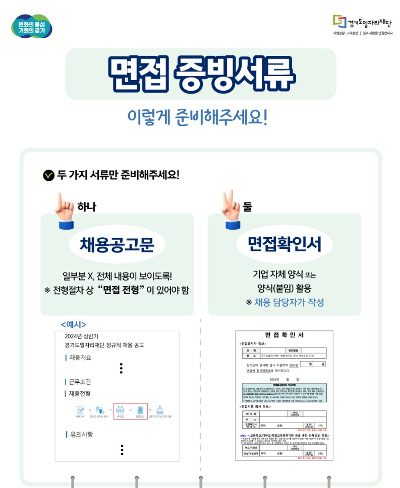 ※ 합격 여부와 상관없이 신청할 수 있음! (경기도 외 지역 소재 및 해외 기업 구직면접, 단시간 일자리(주 30시간 미만)에 응시한 면접도 신청 대상)