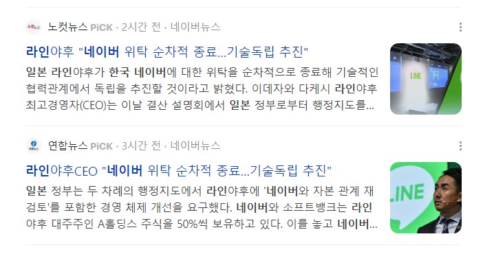 우리나라의 소심한 대응이 일본에게 라인을 수저로 퍼 먹여다주는 꼴이 생기는 것은 아닌지 많은 사람들이 우려하고 있습니다만, 아직도 별다른 정부의 움직임은 보이지 않는 것으로 보입니다.