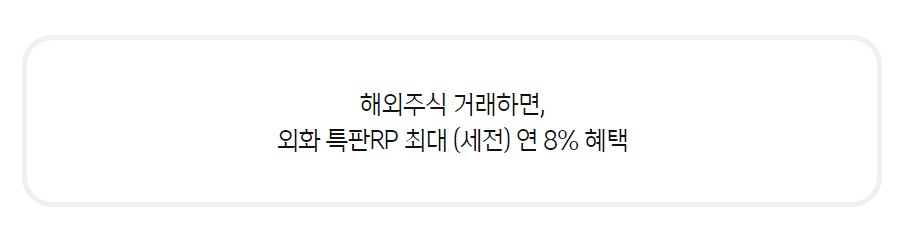 해외주식 거래하면, 외화 특판RP 최대 (세전) 연 8% 혜택 기간 2024.04.29(월) ~ 2024.06.28(금) 대상 만 19~39세(출생일자: 1984.1.1~2005.12.31)인 2024년 생애최초 계좌개설 고객 외국인, 임직원, 법인 제외 FNA계
