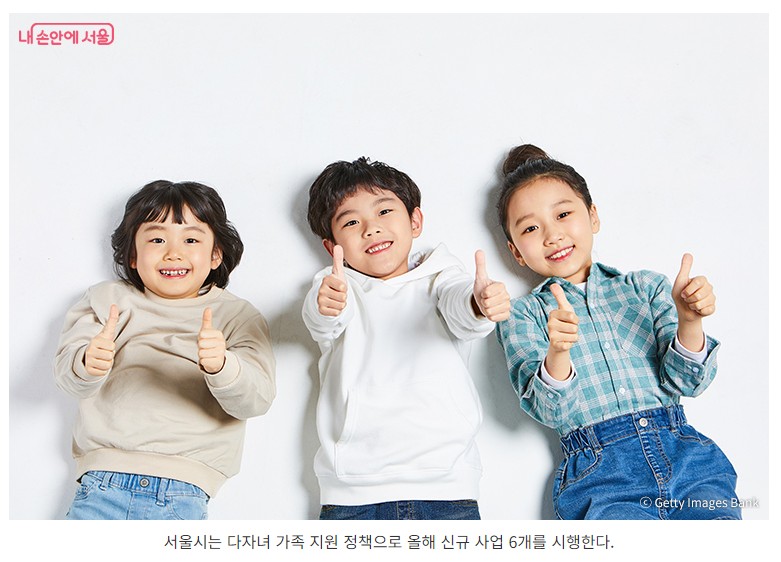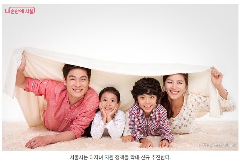 - 지원대상: 서울거주 중위소득 150% 이하 다자녀 가정 (미성년 자녀 2명 이상)