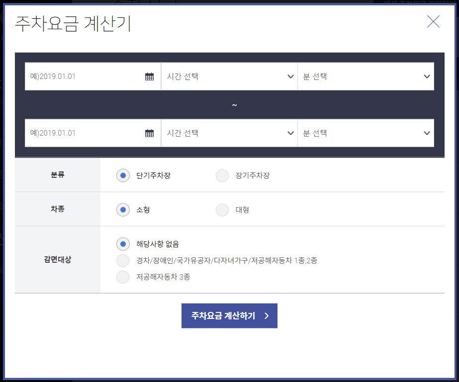 - 지연출차: 예약하신 출차시간을 넘어갈 경우, 실제 주차한 시간을 기준으로 요금 부과