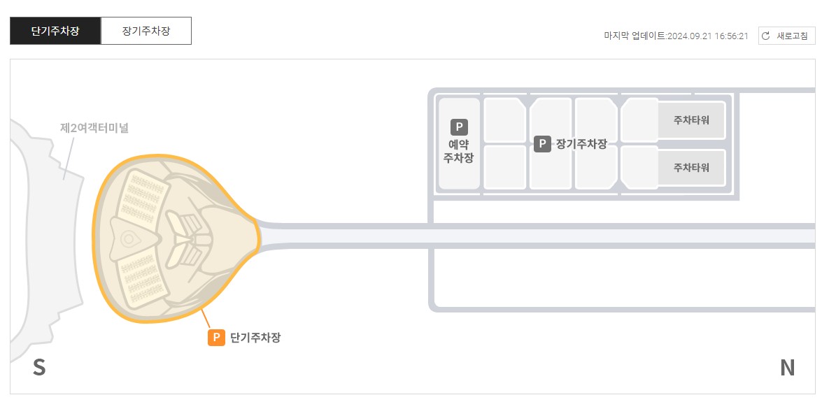 아래 그림은 인천공항 제2여객터미널 단기주차장 혼잡도이며, 실시간으로 바로 확인할 수 있습니다.