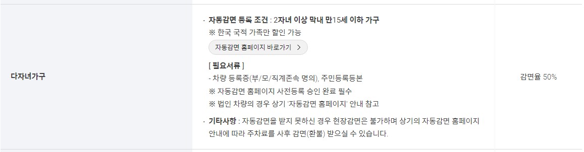 - 재입차불가: 예약주차장 이용 중 출차하면 관리시스템에 이용완료로 처리되어 예약주차장 재입차 불가.