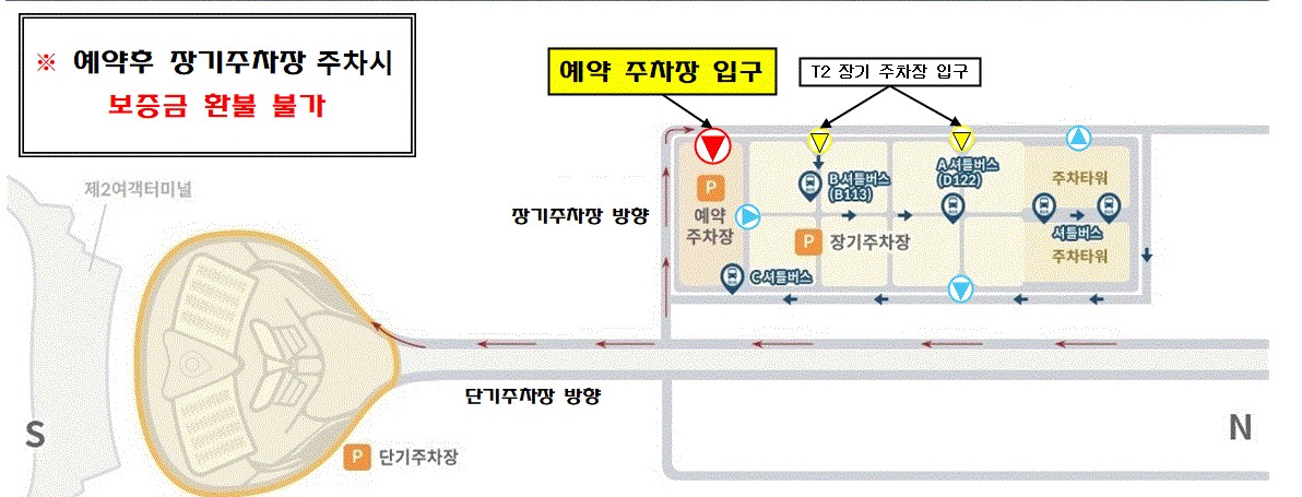 인천공항 제2여객터미널 장기주차장과 인천공항 제2여객터미널 예약주차장은 가까이 위치해 있지만, 엄연히 다른 시스템입니다. 예약주차장을 예약하고 장기주차장에 주차를 하는 경우, 자동으로 노쇼처리가 되며, 보증금 만원은 환불되지 않습니다. 주의해주세요!