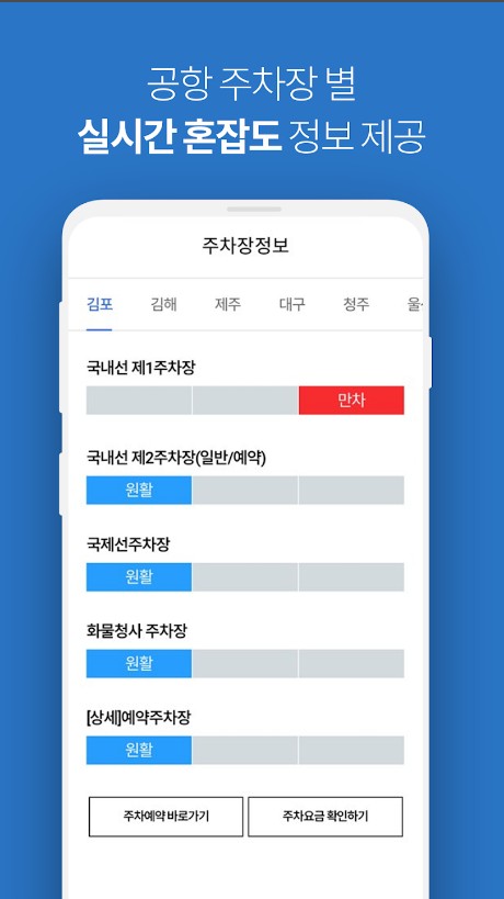 김포공항 예약주차장을 선점하지 못했다고 해도 걱정하지 마세요. 출발하기 전에 또, 거의 김포공항에 도착할 무렵 실시간으로 김포공항 주차장 혼잡도를 확인해볼 수 있습니다.