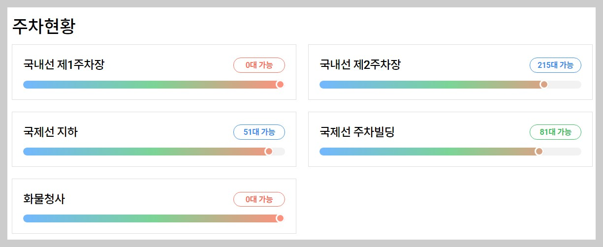 김포공항 주차장 혼잡도를 실시간으로 확인하면, 내가 주차를 할 수 있을지 없을지를 확인할 수 있기 때문에 주차장 예약을 못하더라도 주차에 대한 불안감을 조금은 덜 수 있습니다.