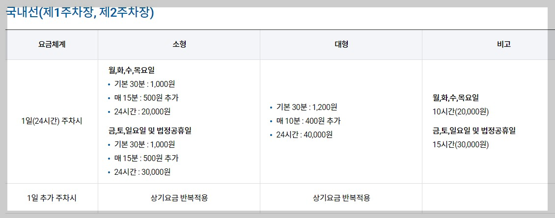 김포공항 국내선(제1주차장, 제2주차장) 주차요금