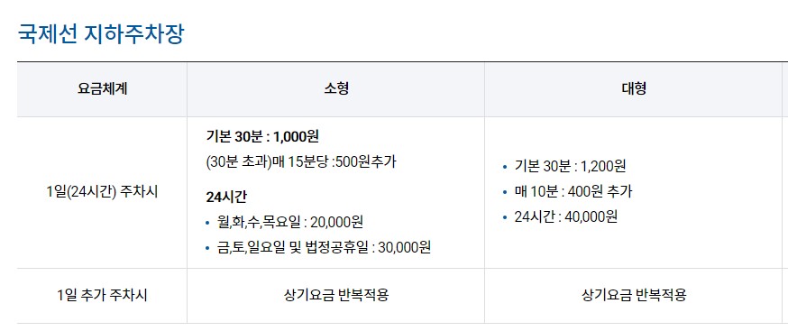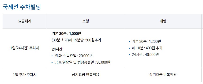 김포공항 국제선(지하주차장, 주차빌딩) 주차요금