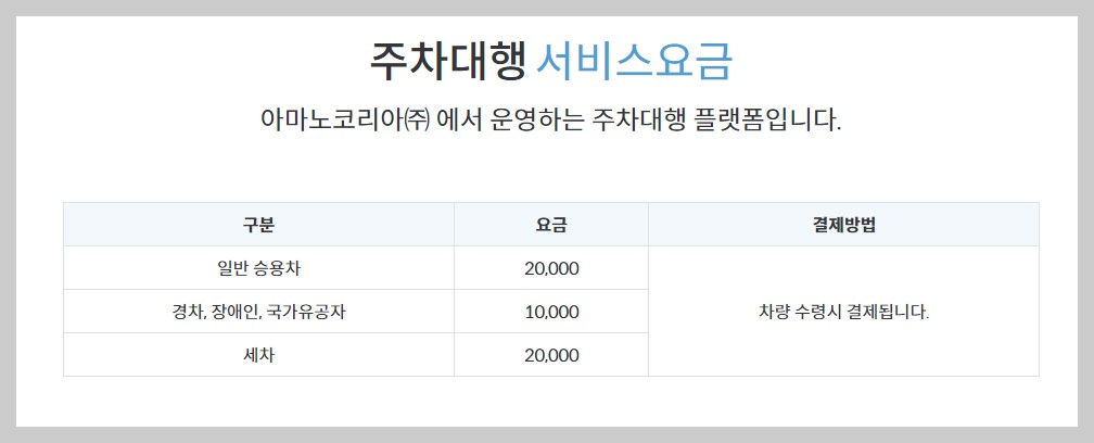 - 공식주차대행업체 : 아마노코리아(주)
