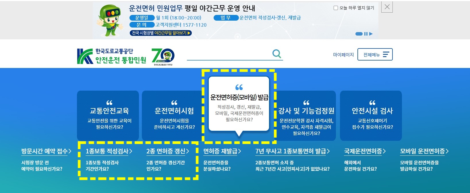 피치못할 사정으로 적성검사 및 면허증 갱신을 연기해야 하는 분들은, 연기를 신청하실 수 있습니다.