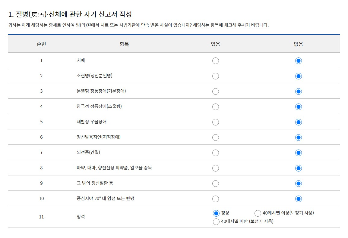 1종보통 적성검사 인터넷으로 진행하는 과정을 살펴보시면 위와 같습니다. 약관동의/행정정보제공->자기 신고서 작성->건강검진자료 조회결과->사진등록->면허증종류, 수령지, 날짜 선택->연락처 등록->결제->완료 입니다.