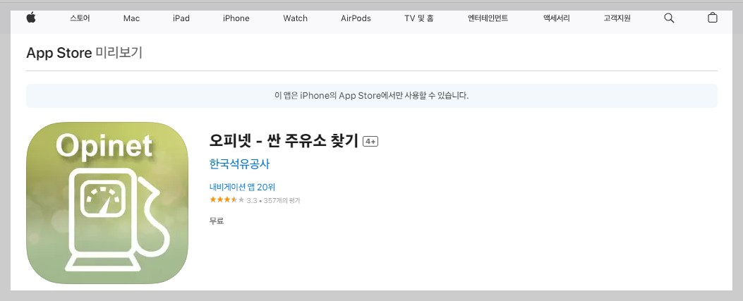 오피넷 앱 설치하기