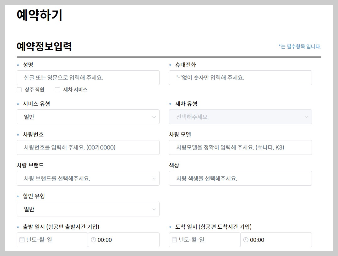 - 예약방법: 홈페이지 접속 후 예약하기 누르고, 예약정보 입력 후 예약하기