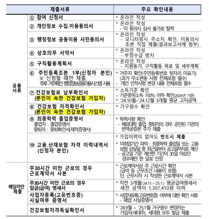 - 주 근로시간이 30시간 미만인 자로 직전 3개월(‘24.11.~‘25.1.) 평균 급여(세전) 1,307,410원 이하인 자