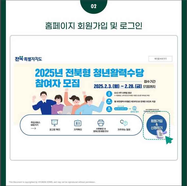 전북형 청년활력수당 사이트(http://jbyouth.ezwel.com) //※ 직접 방문, 우편 등을 통한 접수는 불가