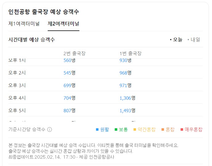 네이버에서도 인천공항 제1여객터미널 시간대별 예상 승객수를 확인하실 수 있습니다.