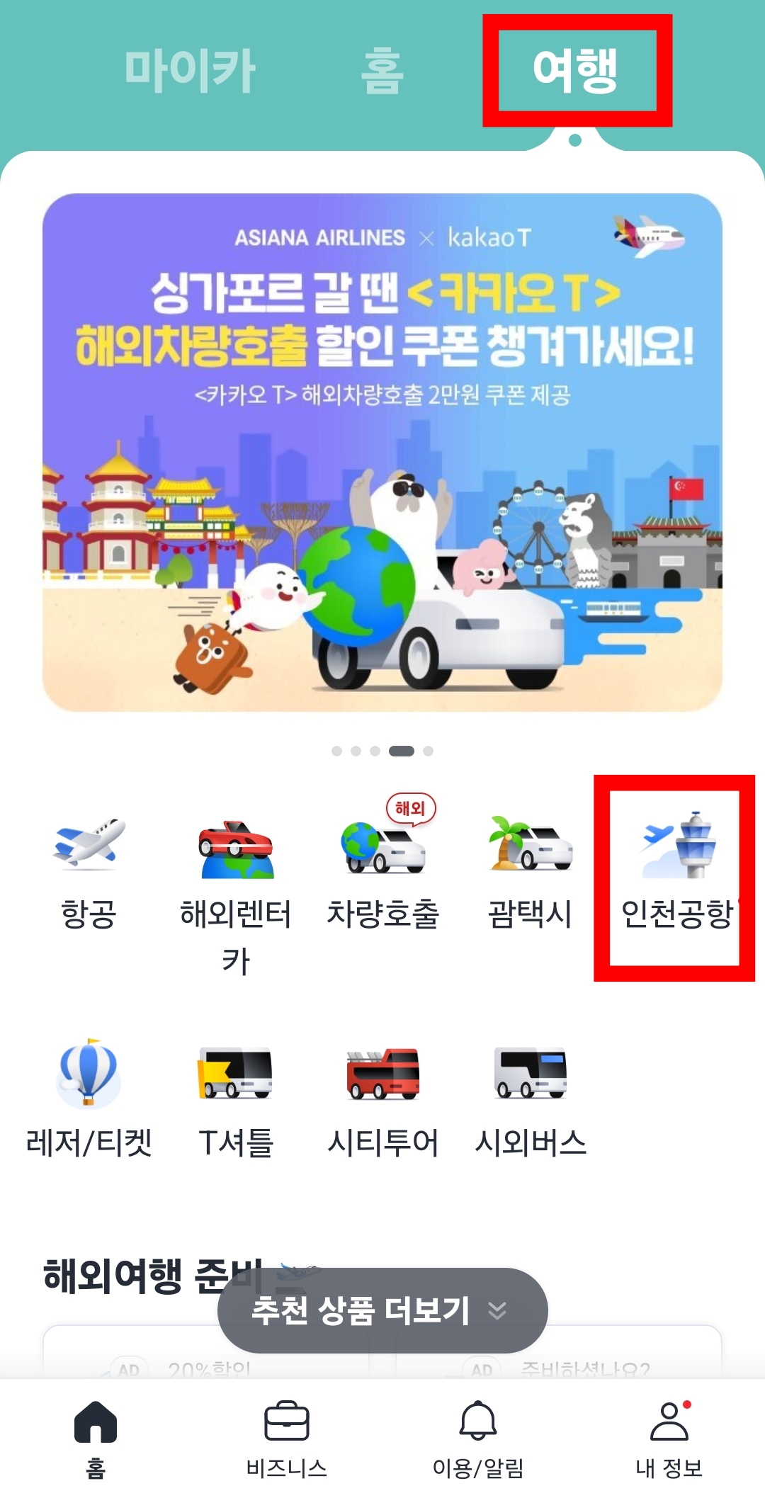 이 외에도 카카오T 앱을 통해 인천공항 관련된 다양한 정보를 확인할 수 있습니다.