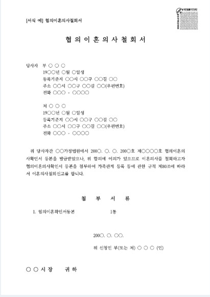 - 협의이혼의사철회서