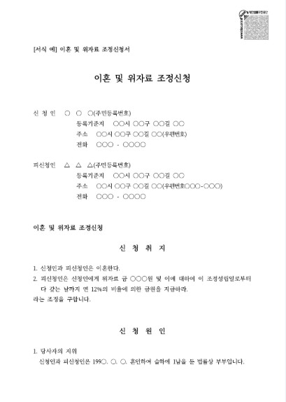 이혼 및 위자료 양식