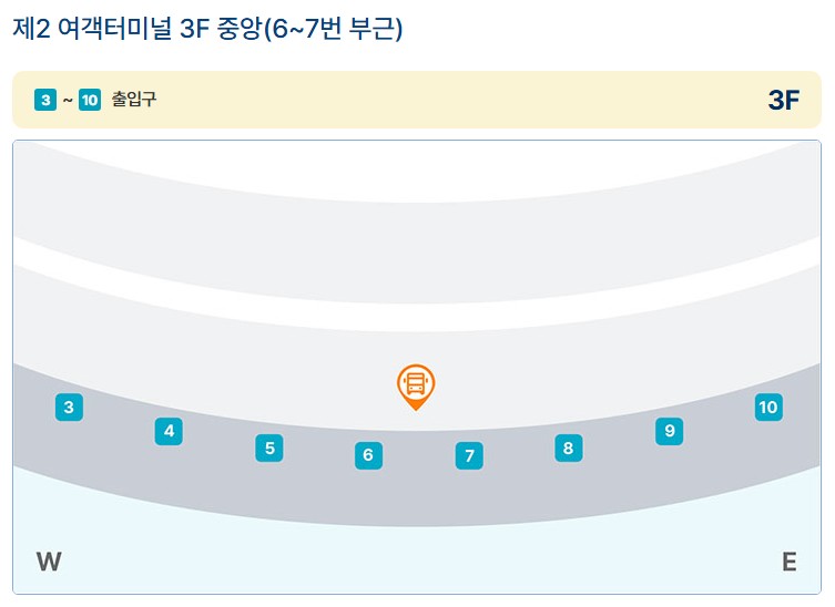 제2여객터미널 3층 중앙 6~7번 부근에서 공항 04번 셔틀버스가 정차합니다.