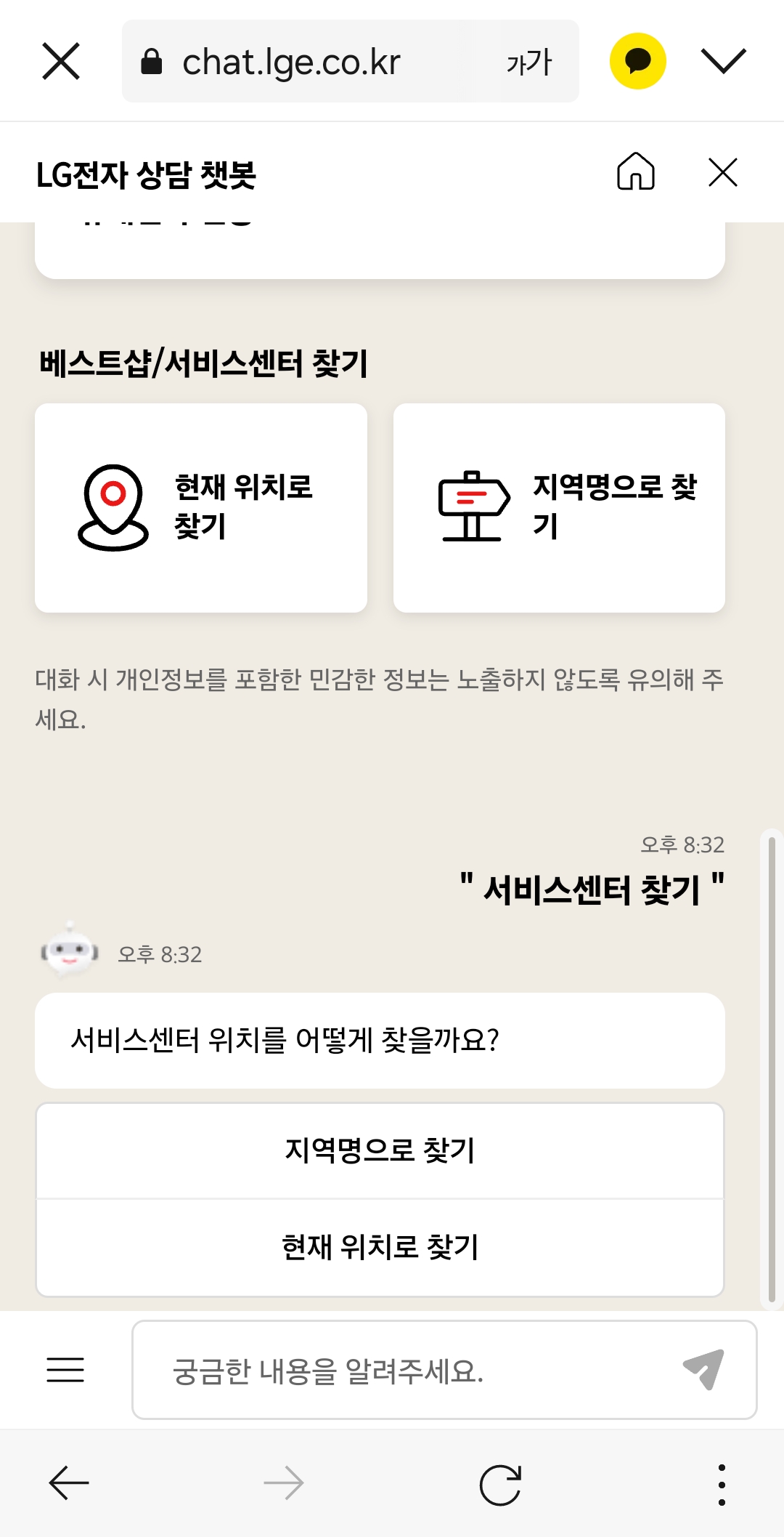 lg전자 공식홈페이지를 이용하는 방법도 있지만 카테고리를 찾아가는게 너무 번거롭다면, lg전자 챗봇에게 바로 물어보는 방법도 있습니다.