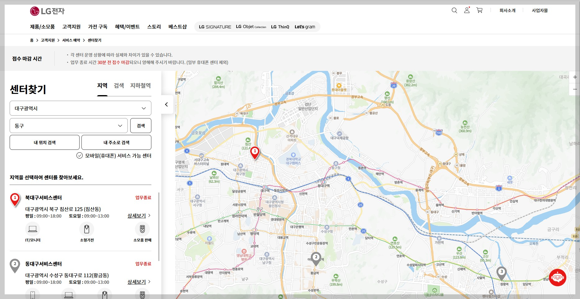 대구 전지역에서 가장 가까운 lg전자 서비스센터를 바로 찾을 수 있는 방법을 소개하겠습니다.