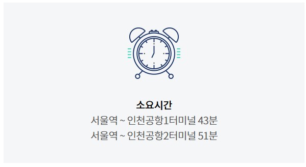인천국제공항과 서울역을 연결하는 공항철도 직통열차의 소요시간은 아래와 같습니다.