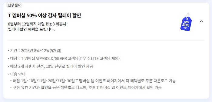 3. 티멤버십 50% 이상 감사 릴레이 할인